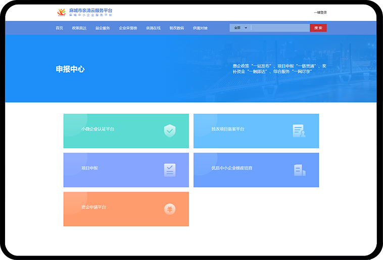 申报中心集中展示各类政策项目和扶持计划的申报信息,提供申报条件、材料清单和流程指引,帮助企业清晰了解申报要求,提升申报效率和成功率。