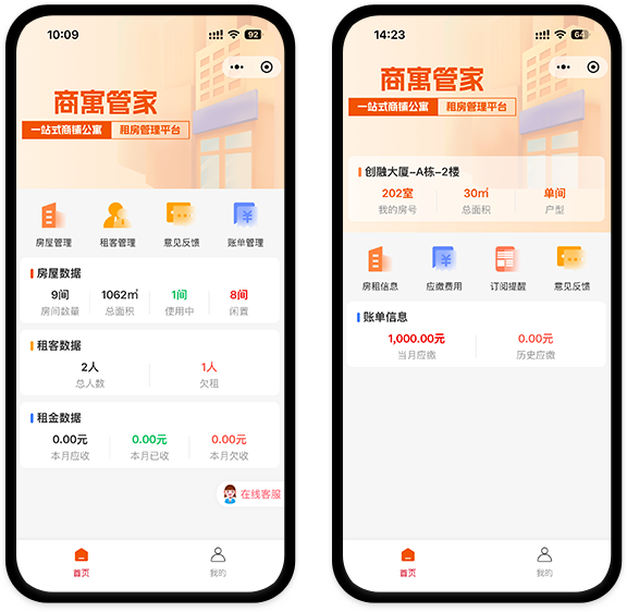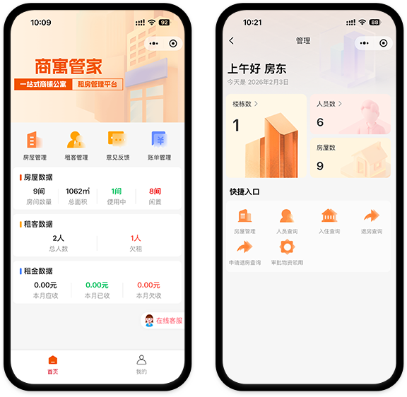 一款专为商业公寓、办公空间及多业态房产管理者打造的轻量级、高效率管理工具。我们致力于通过数字化解决方案,帮助您化繁为简,实现资产与财务的清晰化、让运营省心省力。