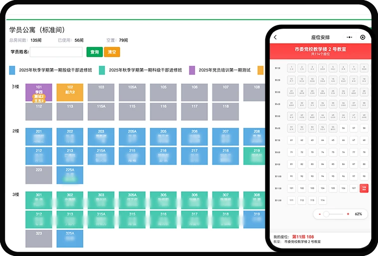 可根据学员职务、单位等要素一键自动生成合理的座位与宿舍分配方案,既体现了组织管理的规范性,又大幅提升了接待安置效率。
