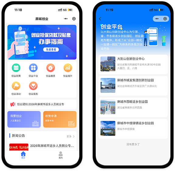 创业板块对接的是创业小程序,创业小程序包含板块有:创业政策、创业报名、创业融资、创业活动、园区企业管理。