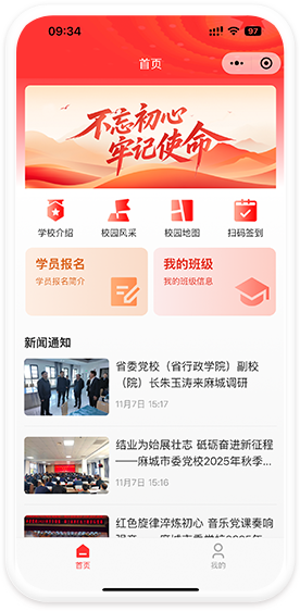 “智慧党校”小程序是一款数字化学习平台,集在线课程、培训管理、考试测评与资讯发布功能于一体,为党员干部提供便捷、高效、系统的现代化教育培训服务。