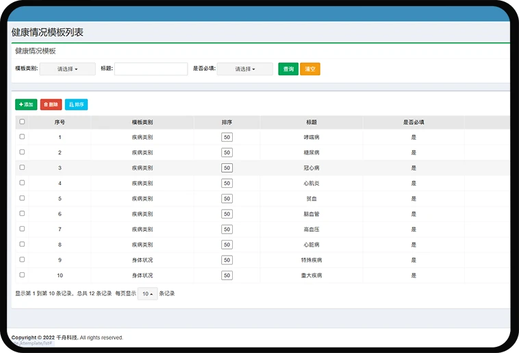 管理后台支持配置标准化健康状况模块与自定义承诺书模板,可实现健康信息一键收集与电子承诺书的在线签署及统一归档。